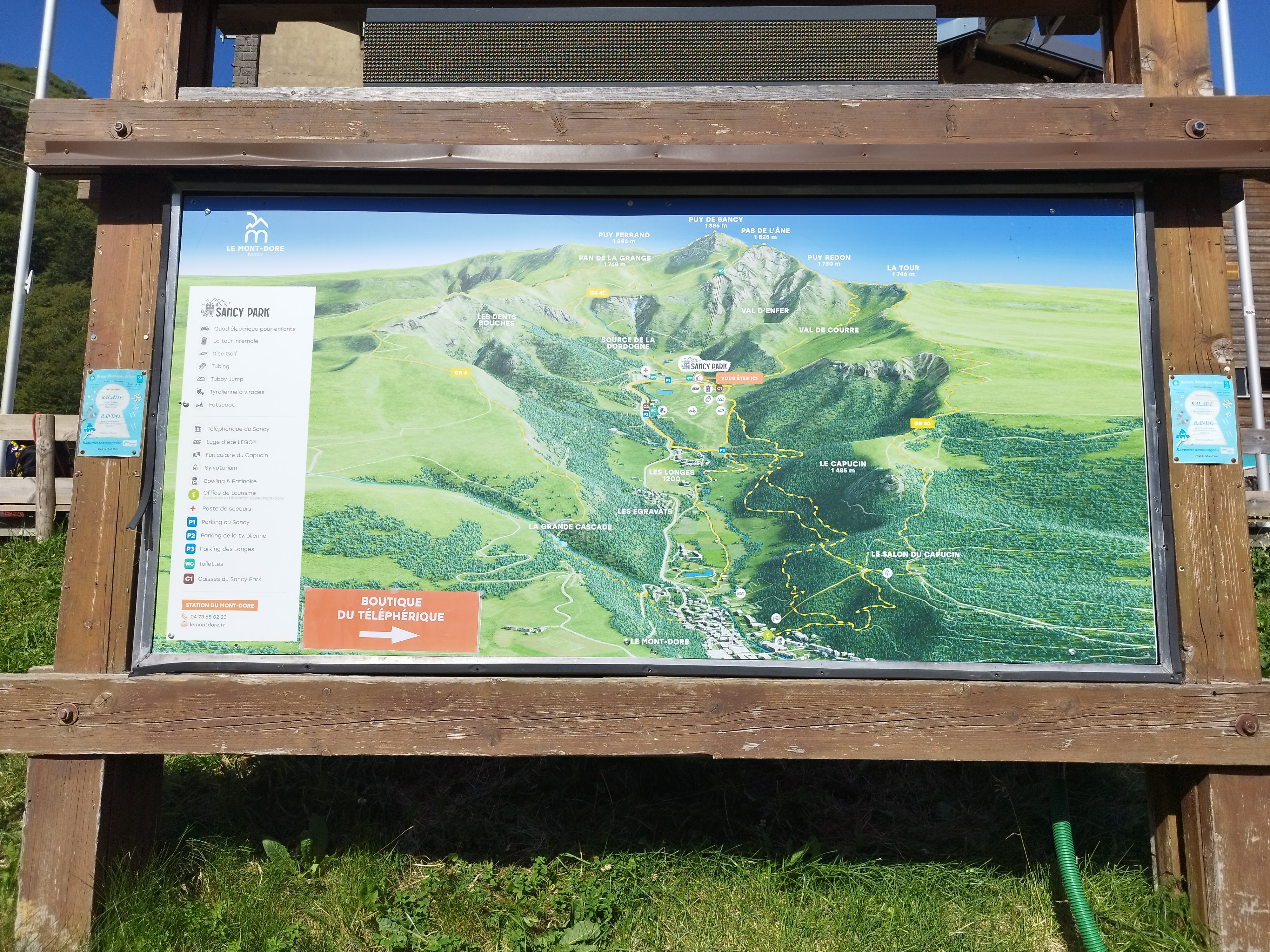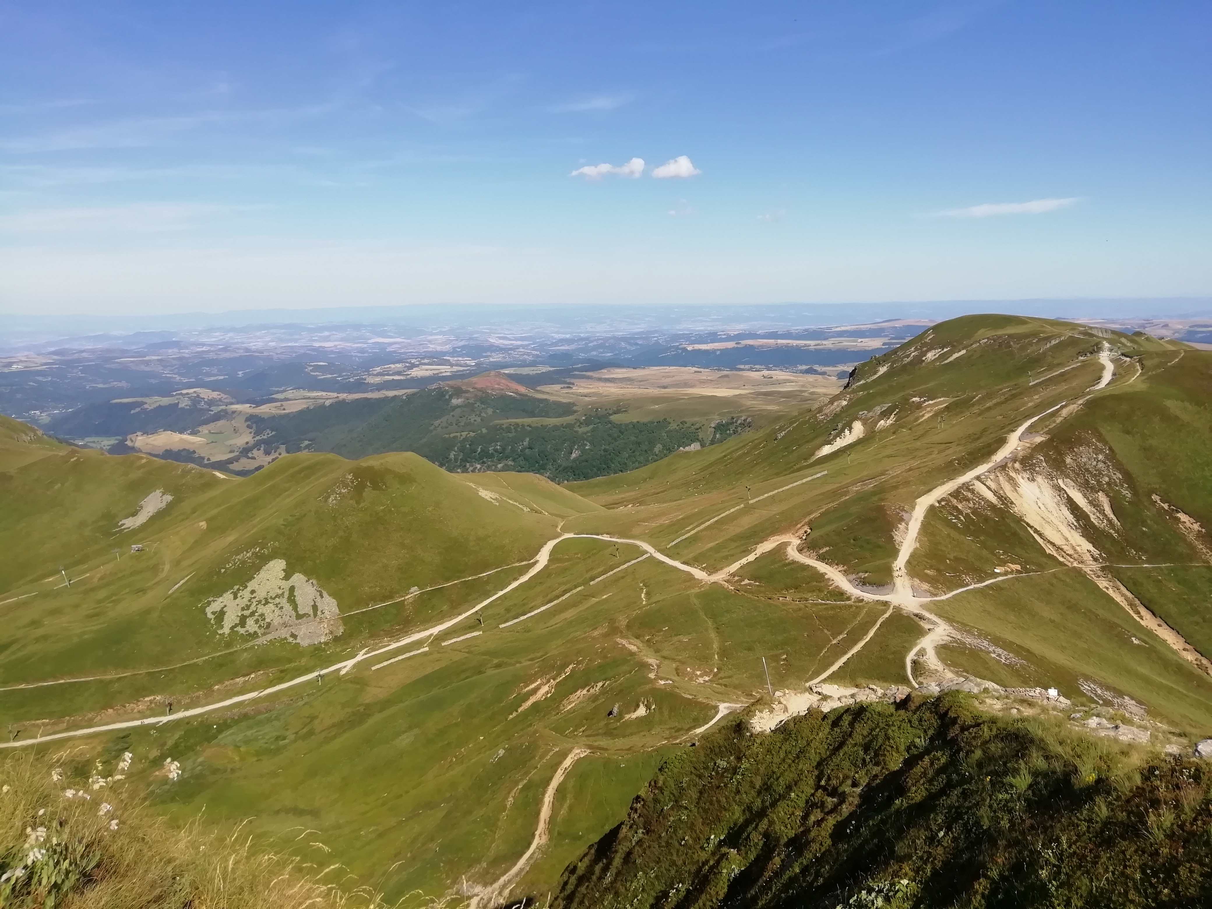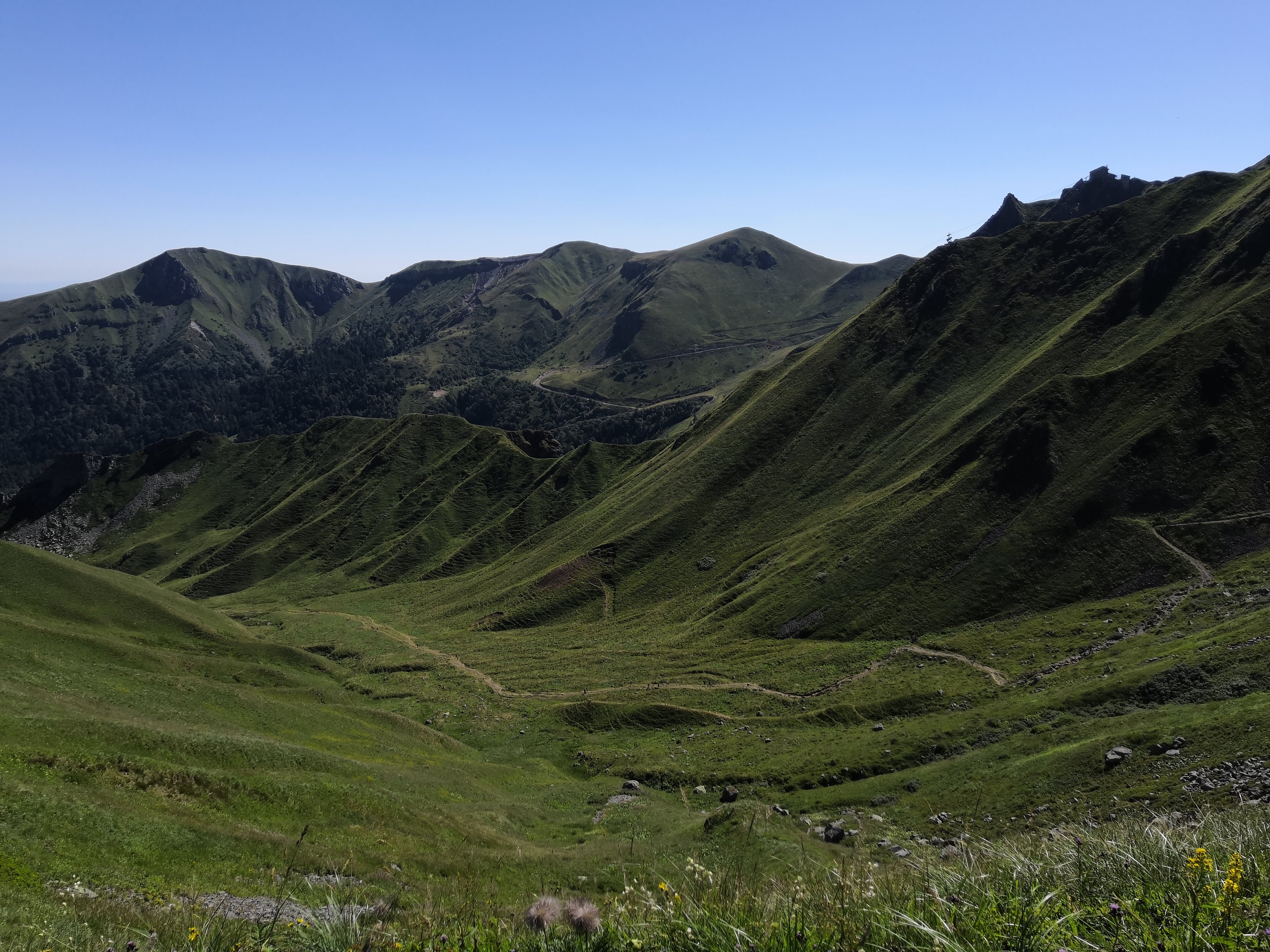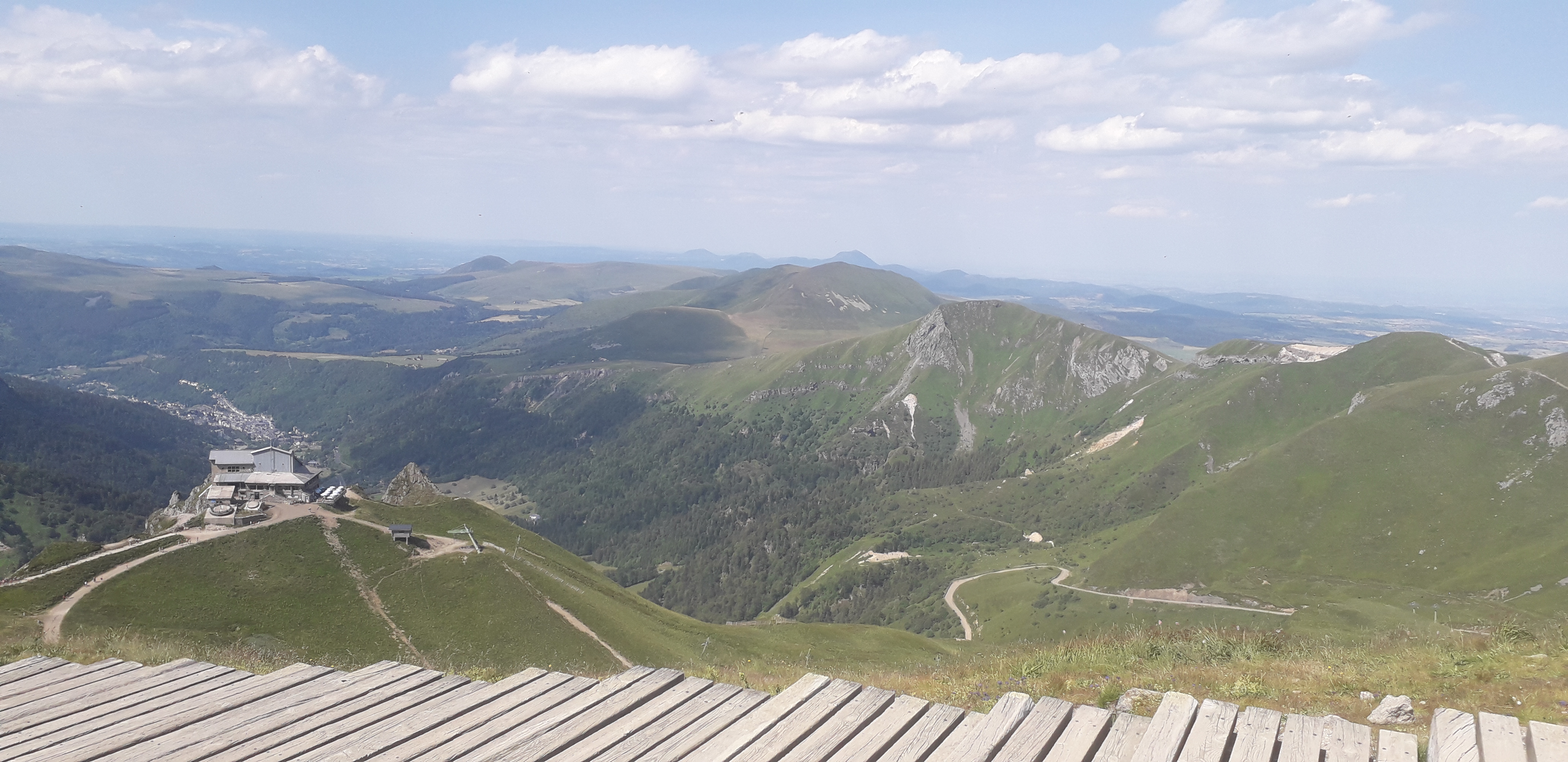 Vue magnifique au sommet, on peut monter en téléphérique de la station de Superbesse (celui de la Perdrix) pour 10€50 AR et faire une boucle de 5 ou 6 km en haut en fonction de sa forme (et de la chaleur actuelle) : puy de Sancy et Puy Gros par ex. L’accès en plein soleil en ce moment est pénible, partir dès 9h à l’ouverture. On redescend à pied ou en téléphérique au choix, a mon avis la descente ne présente pas d’intérêt. On peut accéder à la vallée de Chaudefour également. Beaucoup de monde sur la plateforme du sommet, en août je suppose qu’on ne peut éviter…
