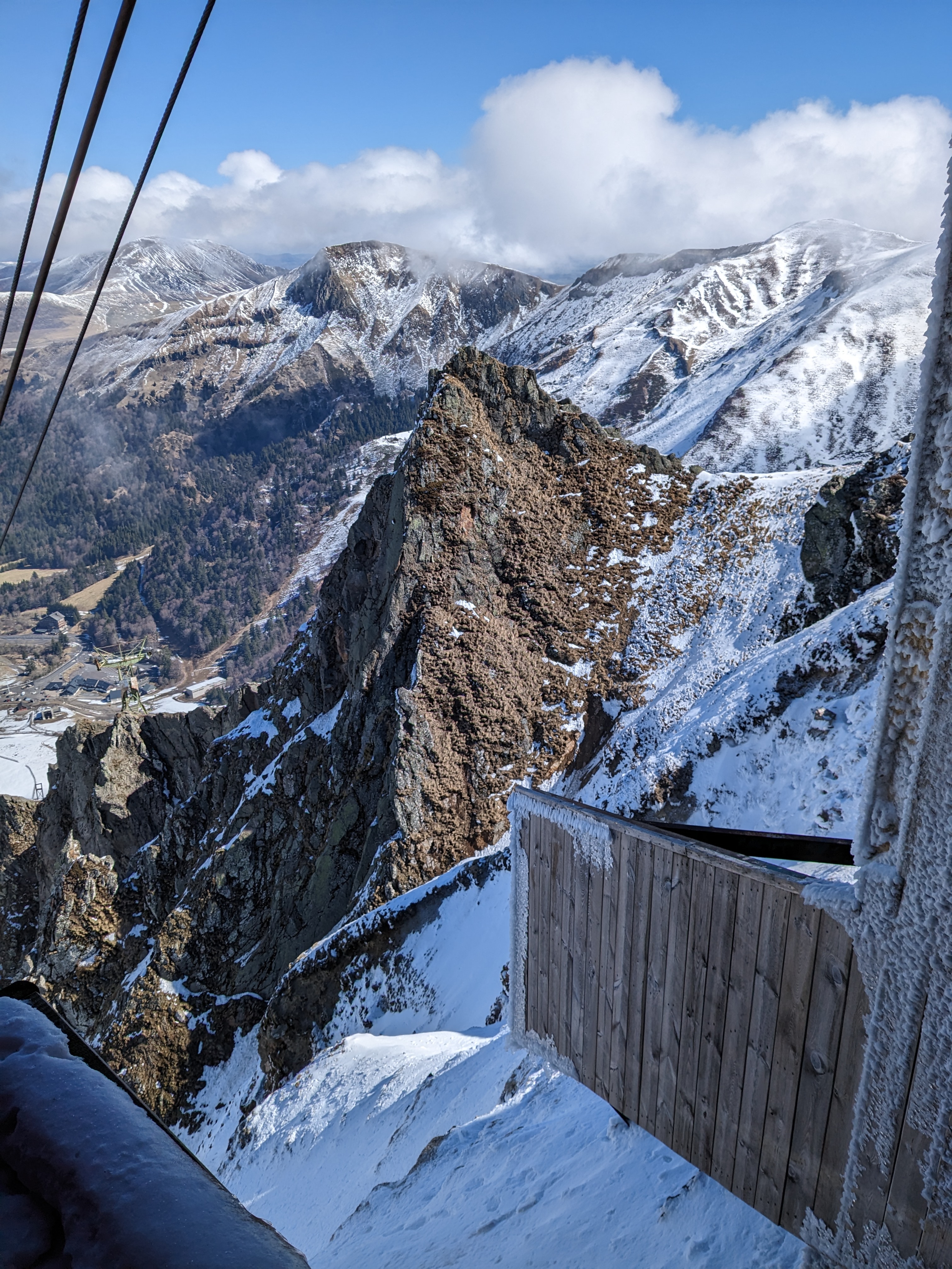 Très joli paysage Pas pu monter en avril car en maintenance 8 mois plus tard je décide d'y retourner . Nous avons pris le télécabine 35.80€ Pour un aller/retour. Arrivée au sommet impossible de prendre l escalier qui est recouvert de neige congelée puisque la température est de -1° Des cordes sont tendues vous limitant à un espace réduit pour quelques photos et l accès au bar bien évidemment où là vous pourrez acheter une crêpe au prix de 5 € Un vin chaud 4.50€ J estime que cela pourrais être précisé à la caisse en achetant vos tickets. Sachant qu'il ne neige plus depuis plusieurs jours et que les pistes sont même fermés. Avec un tarif pareil j estime que l escalier aurait pu être déneigé pour rentre l accès aux visiteurs