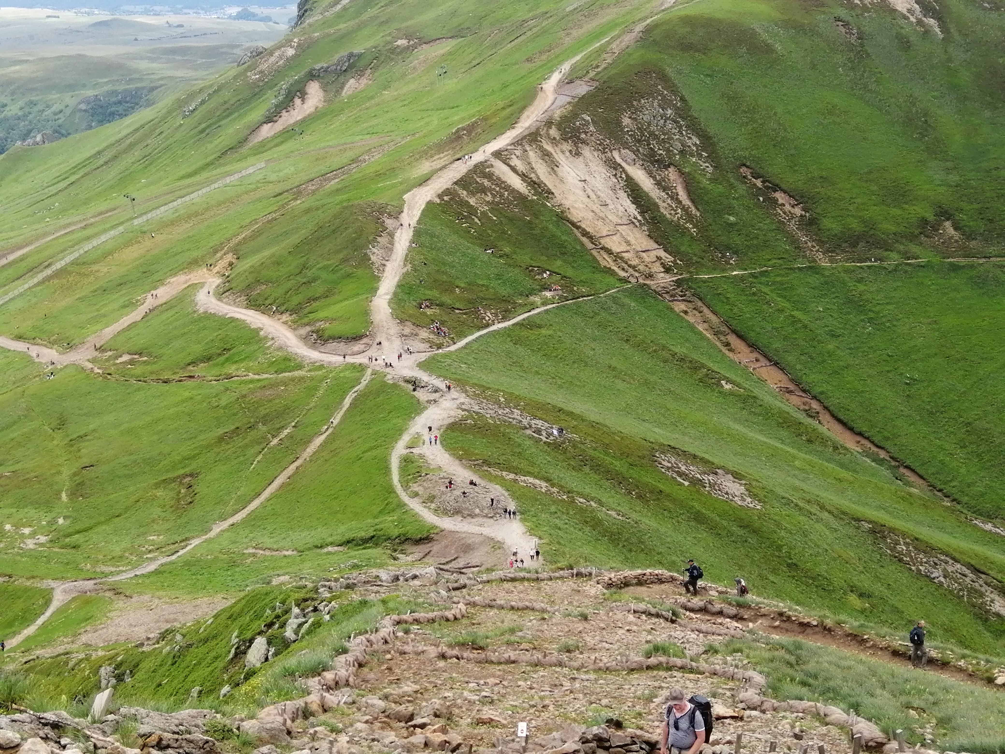 Trop de monde, même le matin, chemin érodé +++ . Ils ont fait des travaux d'aménagement mais le chemin reste peu intéressant : de la poussière, des blocs de pierre et de la foule !!! La haut la table d'observation est remplie de mouches donc difficile d'admirer la vue .... je conseille le puy gros, dont le chemin est bcp moins fréquenté et la vue toute aussi belle.