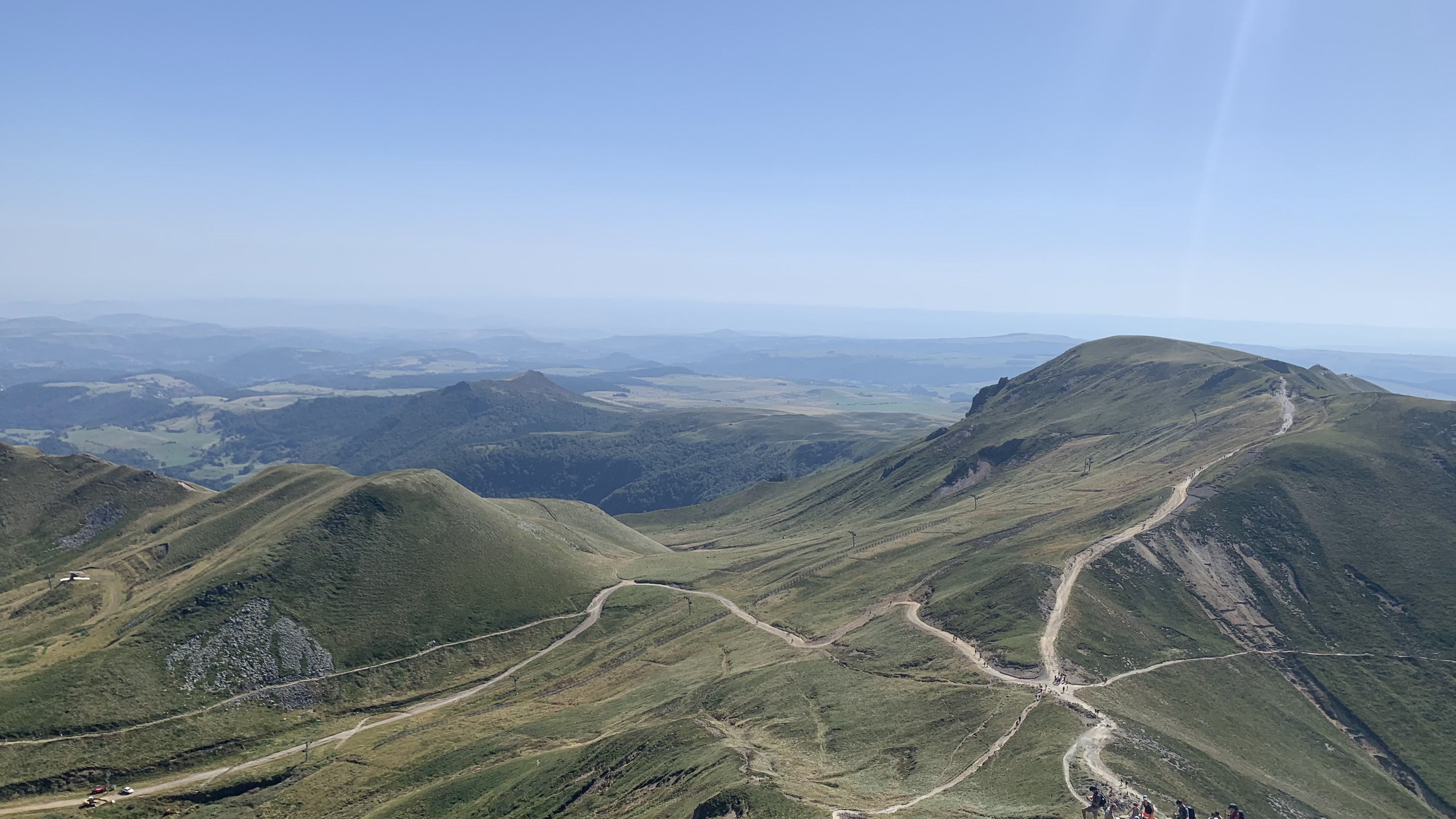 Arrivés au plus haut sommet du Massif Central, on peut observer un panorama magnifique ! Du Mont Dore on peut monter soit à pieds soit en télécabine. D'où le monde au sommet... Un peu trop... Pour arriver au sommet mieux vaut faire la montée la plus longue (par les différents puys) car l'autre montée ne comprend qu'une grande route caillouteuse... C'est très pentu donc pour les enfants ça peut être dur. On apprécie la décente en télécabine !