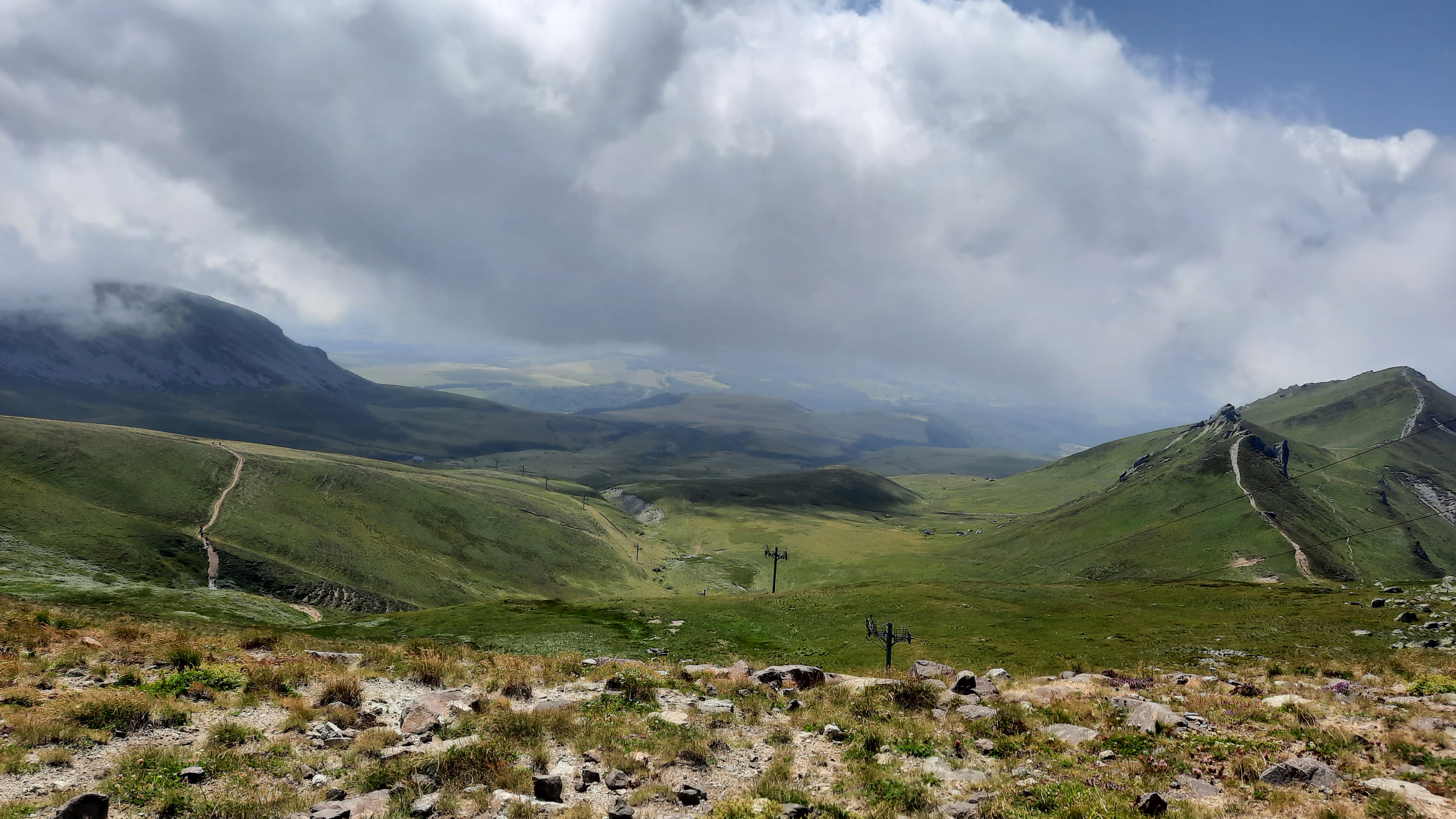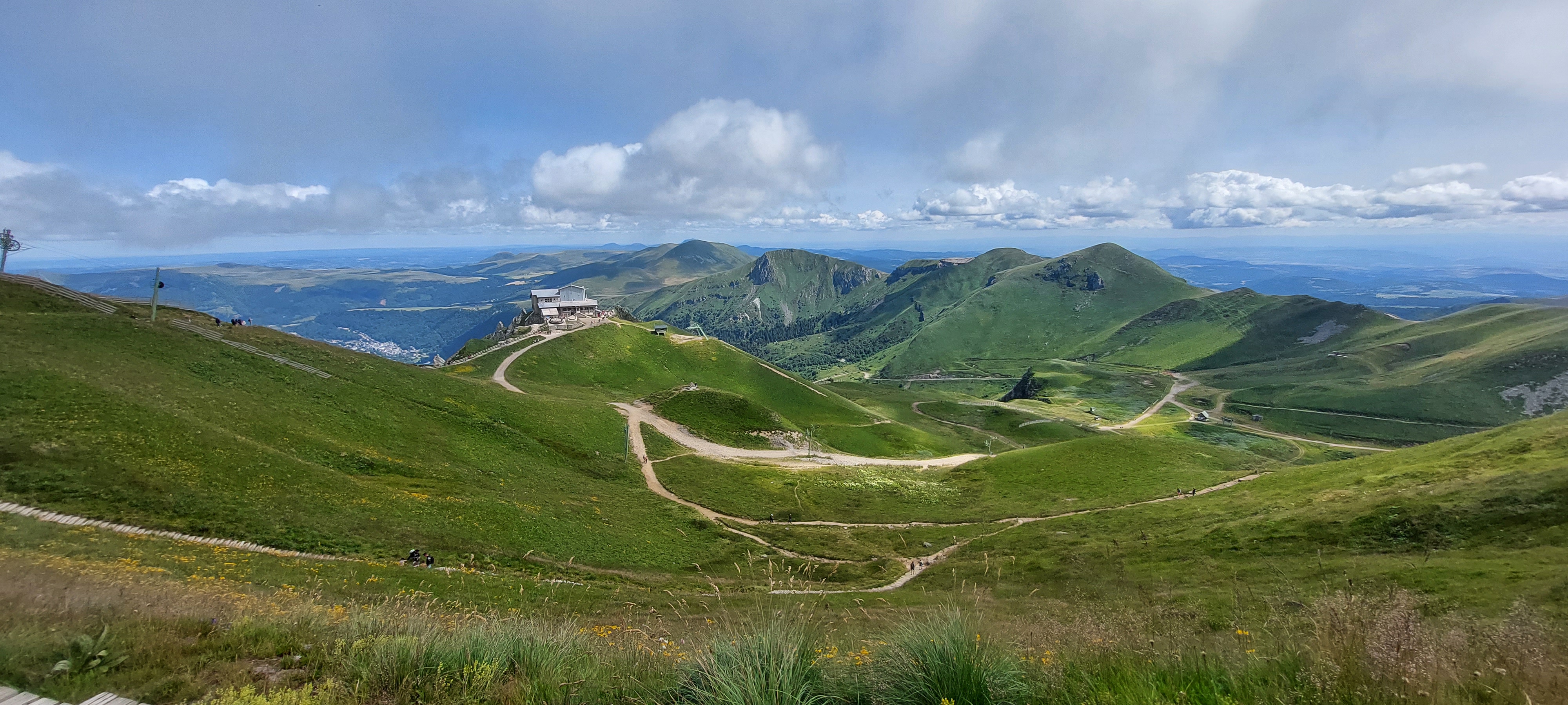 magnifiques paysages. cette montée au puy de sancy par les marches et vraiment à faire. montée en télécabine (où les consignes sanitaires sont appliquées)pour avoir une vue a couper le souffle. les enfants de 5 et 10 ans n'ont pas eu de problème à monter. nous avons même eu droit a un départ de parapente du haut..... belle ballade a faire , bien chaussé quand même pour les familles avec un bébé, je pense qu'il est plus judicieux de l'avoir en porte bébé, plutôt qu'a bras, les marches restent tout de même dangereuses, elles ne sont pas toutes de la même taille.